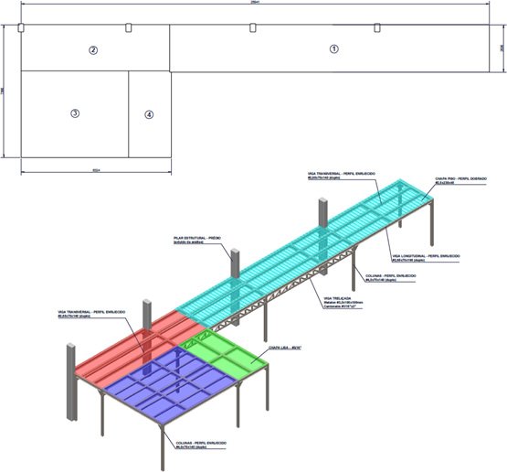 O desenvolvimento do projeto e memorial de cálculo de mezanino para armazenamento de materiais exigiu uma análise detalhada das diferentes cargas aplicadas ao longo da estrutura. Cada carga foi cuidadosamente considerada para garantir a integridade e a segurança do mezanino, contemplando os tipos de materiais a serem armazenados, a distribuição das cargas e os pontos de apoio. A estrutura foi projetada para suportar cargas estáticas e dinâmicas, oferecendo uma solução robusta e eficiente para as necessidades de armazenamento da Cervejaria Imperatriz.